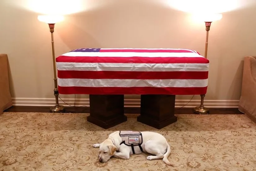 During the last years of President George H.W. Bush's life, Sully provided comfort and helped the former Commander-in-Chief deal with the symptoms of Parkinsons' disease. The picture above shows Sully's resolve to not leave his master until the final moment.